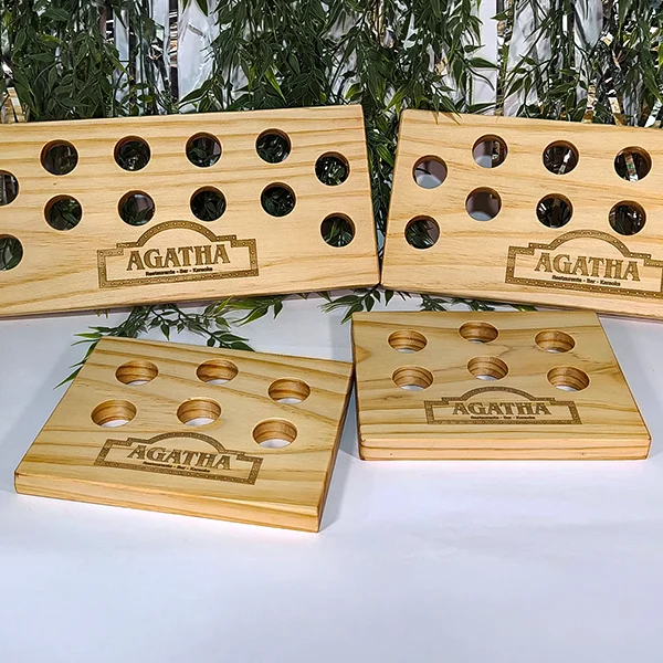 Base Para Shots en Madera de Pino artesanal en MDF. Diseño exclusivo colombiano, personalízalo a tu gusto. Fabricado bajo pedido.