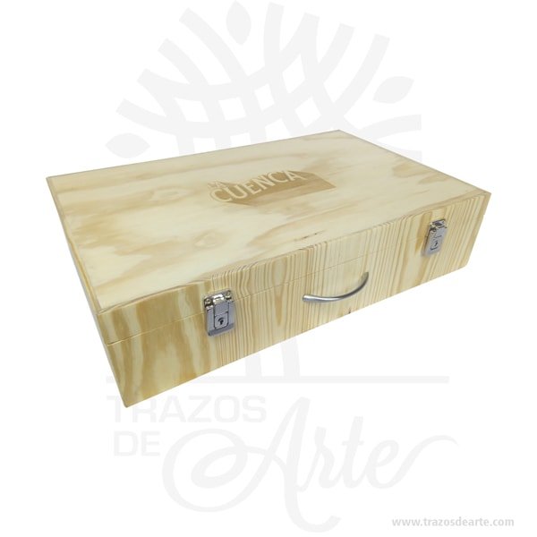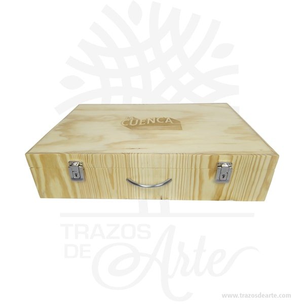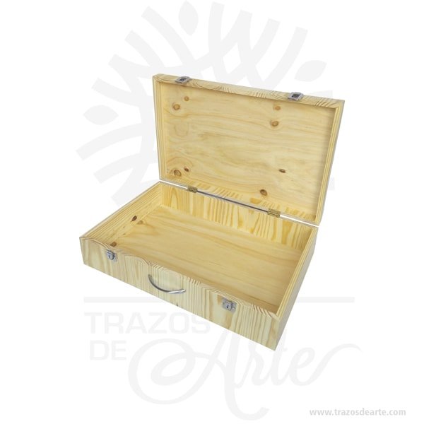 Caja maletín en madera de pino en MDF – Una pieza artesanal que captura la esencia del trabajo manual colombiano. Cada producto es único, elaborado con dedicación y pasión por nuestros artesanos locales. Dimensiones: 58 x 38 x 12 cm. Incluye personalización con nombre, fecha o diseño especial. Esta creación es perfecta para añadir un toque de elegancia rústica a tu hogar. Su diseño versátil se adapta a cualquier estilo de decoración, desde lo tradicional hasta lo moderno. Lleva un pedazo de Colombia a tu hogar con esta hermosa artesanía.