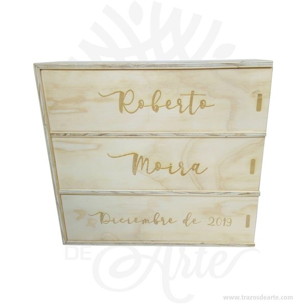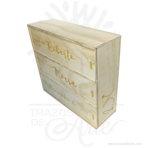 Caja para 3 botellas de vino para personalizar de 36 x 34,5 x 12 cm – Pieza artesanal en MDF hecha a mano en Colombia. Regalo único para ocasiones especiales.