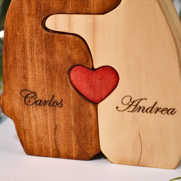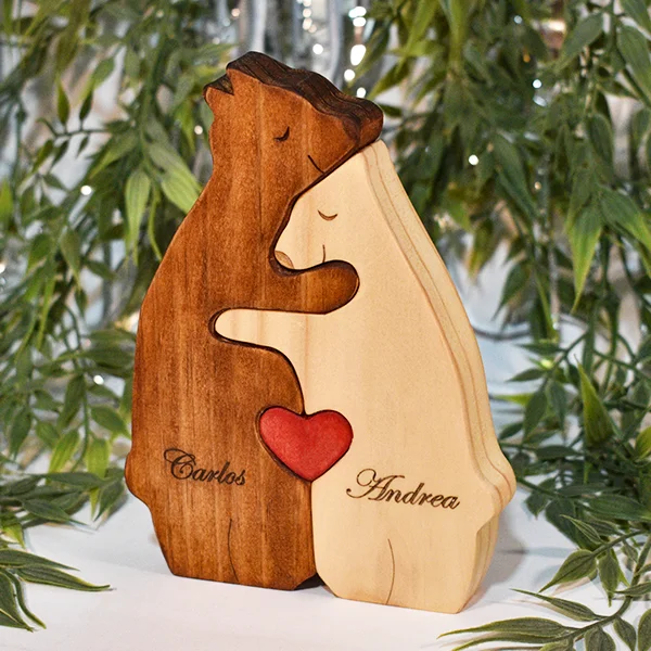 Escultura Pareja de Osos en Madera de Pino Personalizado – Pieza artesanal en MDF hecha a mano en Colombia. Regalo único para ocasiones especiales.