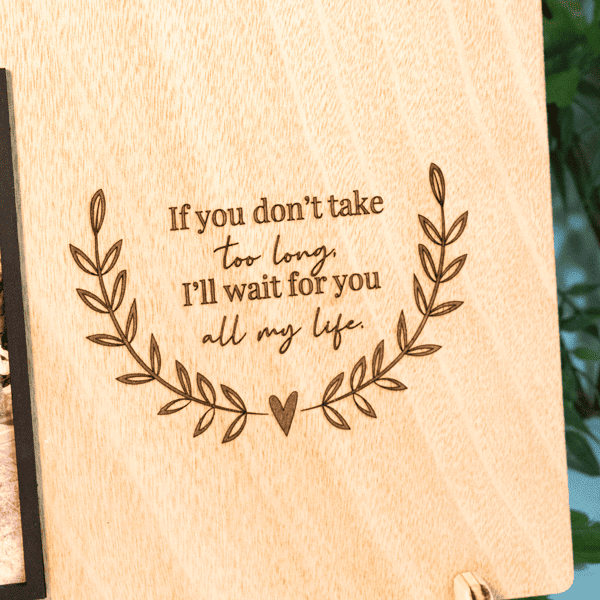 Portaretrato en madera triplex de okume en MDF – Una pieza artesanal que captura la esencia del trabajo manual colombiano. Cada producto es único, elaborado con dedicación y pasión por nuestros artesanos locales. Dimensiones: 30 x 20 cm. Incluye personalización con nombre, fecha o diseño especial. Esta creación es perfecta para añadir un toque de elegancia rústica a tu hogar. Su diseño versátil se adapta a cualquier estilo de decoración, desde lo tradicional hasta lo moderno. Lleva un pedazo de Colombia a tu hogar con esta hermosa artesanía.