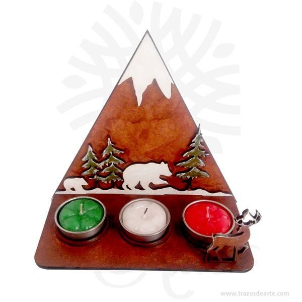 Soporte Velas Montaña Navidad – Artesanía colombiana en MDF. Pieza única personalizable, ideal para regalar. Envío a todo Colombia.